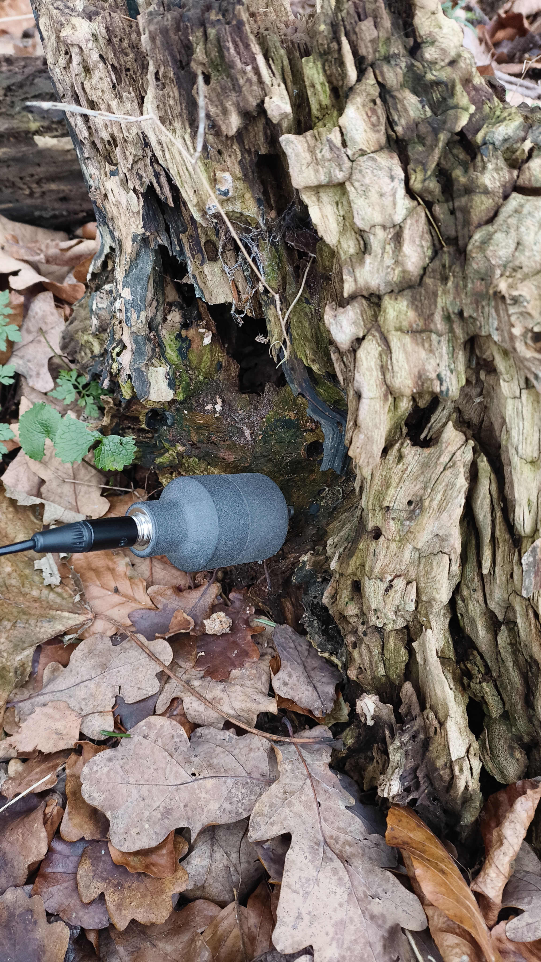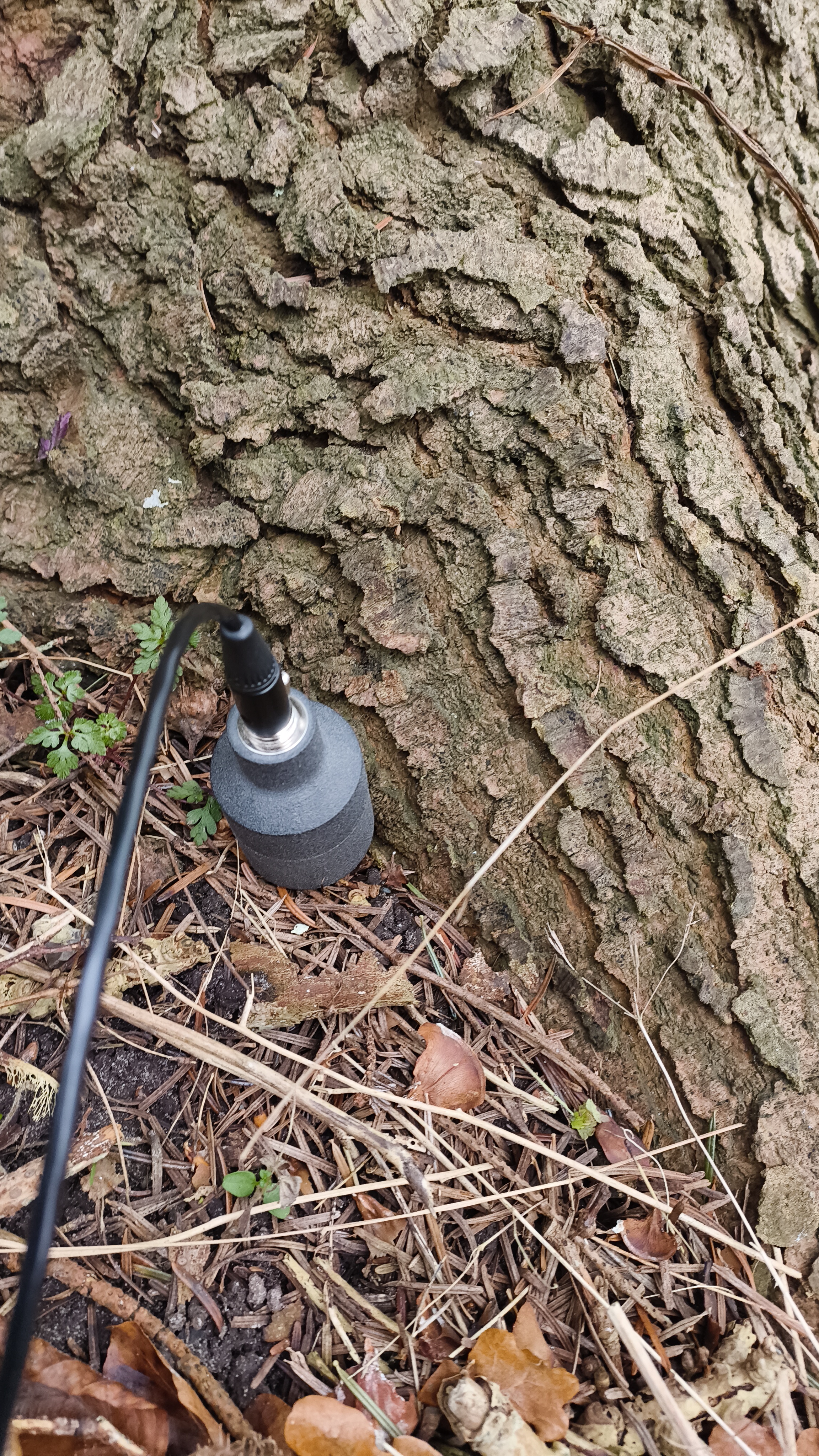 To “listen” to the forest, I needed the right tools. After considering various parameters like humidity and pressure, I focused on capturing the vibrations and sounds of the soil, trees, and plants. This led me to two microphones: the Jez Riley French ‘ECOUTIC’ contact microphone and the Interharmonic ‘GEOPHON.’