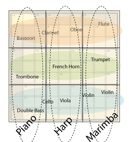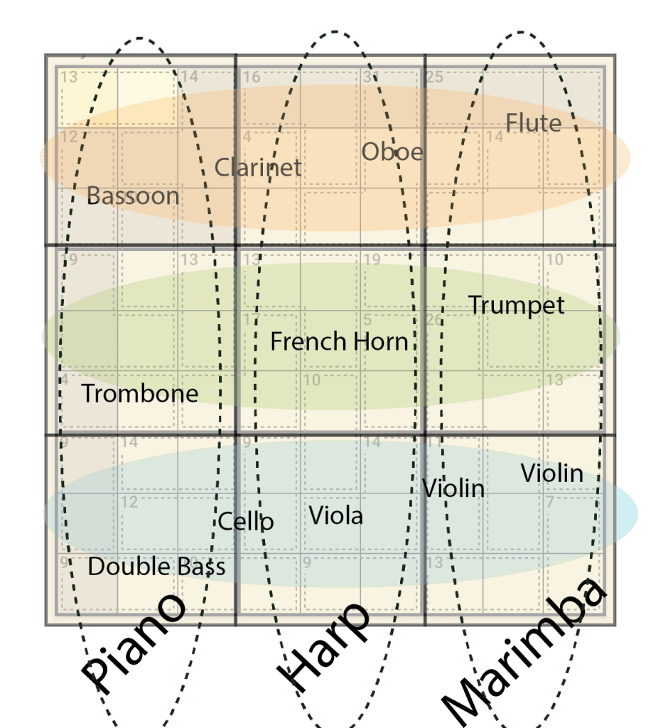 Since the average size of these ensembles were 6 players, I found it useful to look at the six most frequently used instruments, marked in bold above, and these are: Piano, Clarinet, Flute, Cello, Violin, Percussion.